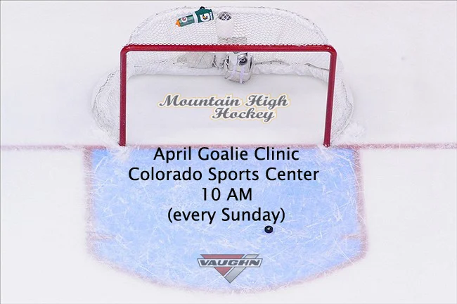 Our Spring/Summer goalie training program kicks off on April 3rd with our free goalie clinic at the Colorado Sports Center. Every Sunday in April, our MHH goalie coaches Matt Zaba and Joe Howe will be hosting a goalie clinic at 10 AM. Cost to attend is $50 per session or you can sign up for the month at $120. We will continue on with our Sunday clinics in May and June as well. If you have any questions you can contact matt@mountainhighhockey.com.